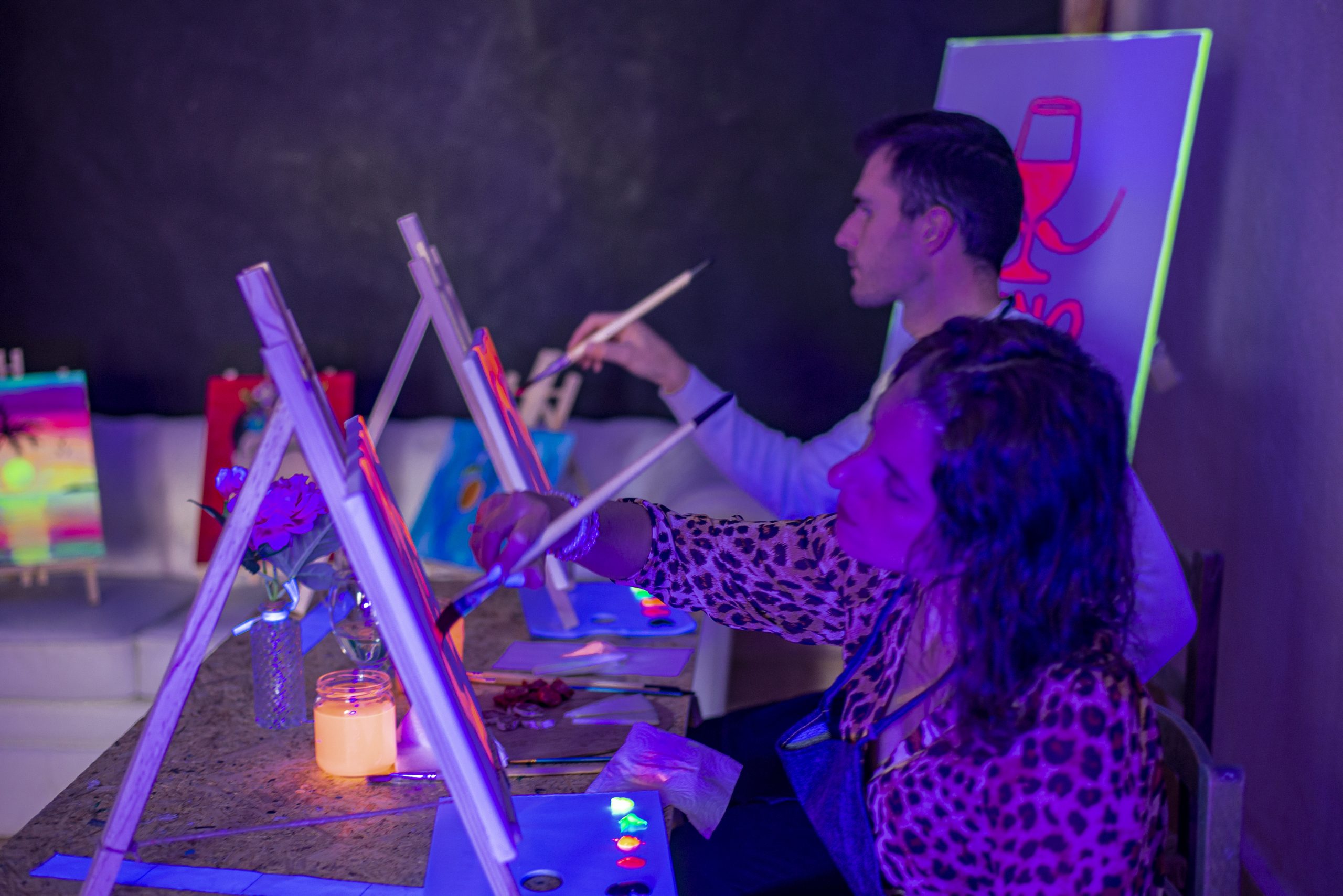 ¡Una cita romántica y divertida, donde sorprenderás a tu pareja pintando juntos un pedazo de cuadro de dos piezas (díptico) mientras tomáis vinitos! No te preocupes si nunca has pintado, te guiaremos para que seáis super artistas por un día.